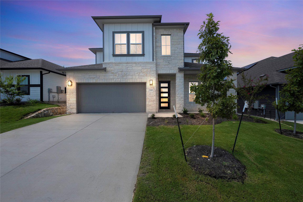 This crisp, clean, contemporary new home boasts high ceilings embedded with large windows to wash the front living areas in natural light. This 3-bedroom-plus-office floorplan is the perfect work from home configuration for a busy professional couple or a family with kids. Premium hardware selections adorn all soft close cabinet doors and drawers that are capped with 3CM countertops throughout, single lever faucets, lever doorknobs, covered patio, large back yard, and storage is abundant. This home is ready for a Tesla Powerwall if optioned.