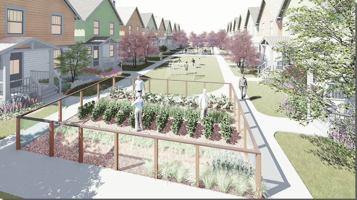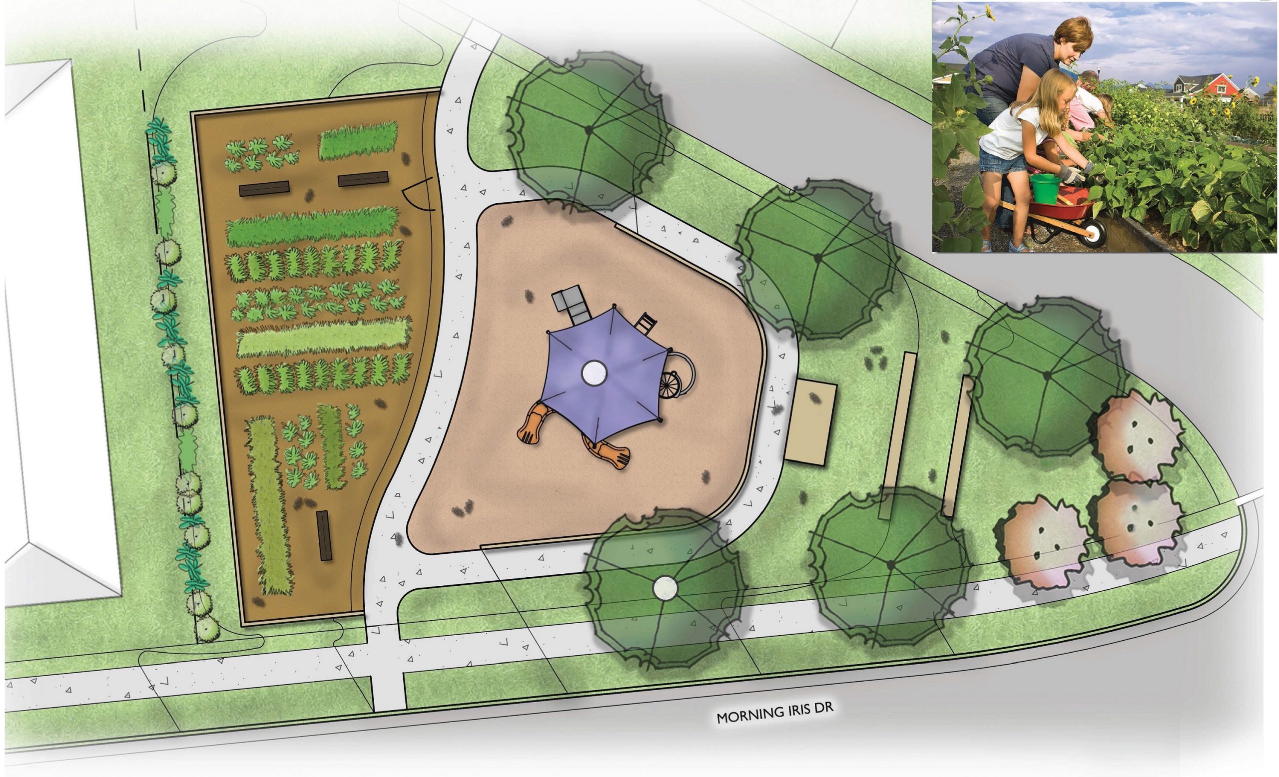 Expanding our community gardens is another important focus for Phase II. Our new harvest garden area will feature a courtyard garden between homes and a space for open play.